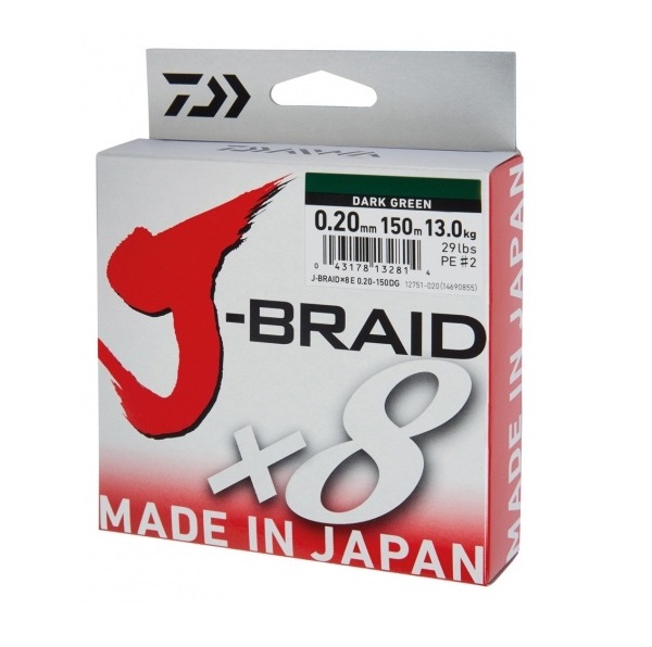 Высококлассный плетеный шнур отменного японского качества J-Braid X8 от фирмы Daiwa состоит из восьми волокон высококачественного полиэтилена, имеет очень плотное плетение и сечение, максимально приближенное к круглому. Благодаря этому плетенка обладает поверхностью отменной гладкости. Плетеные шнуры J-Braid X8 имеют практически нулевую растяжимость, что способствует правильной игре приманки и быстрой подсечке, превосходной связи с приманкой, а также более дальнему и точному забросу. Шнур также обладает хорошей устойчивостью к истиранию, благодаря чему минимально подвержен повреждению о различные подводные препятствия и может применяться для ловли в затрудненных условиях.