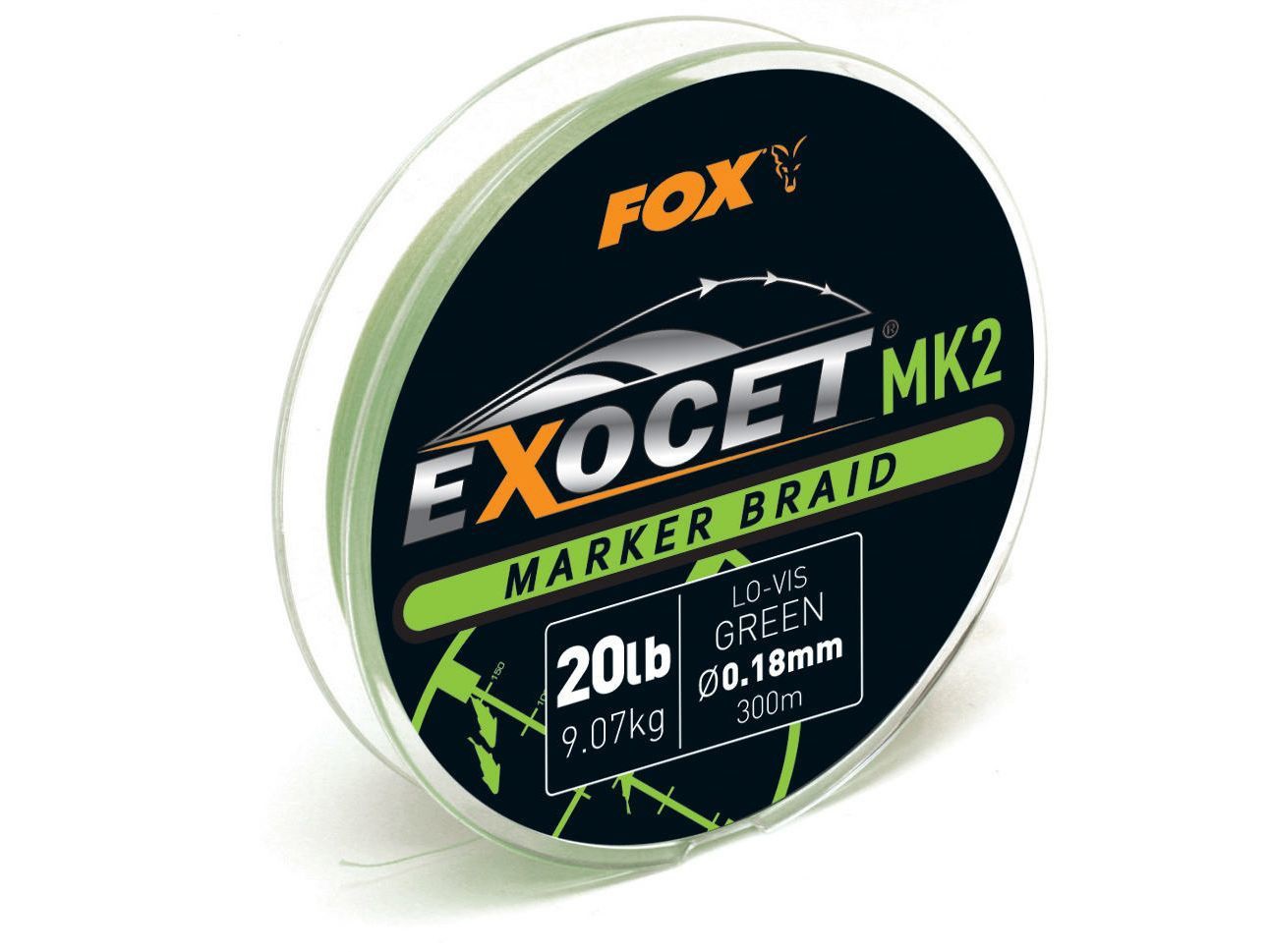 FOX (Фокс) зеленая плетеная леска для маркера Exocet MK2 0.18мм 20lb 300м
