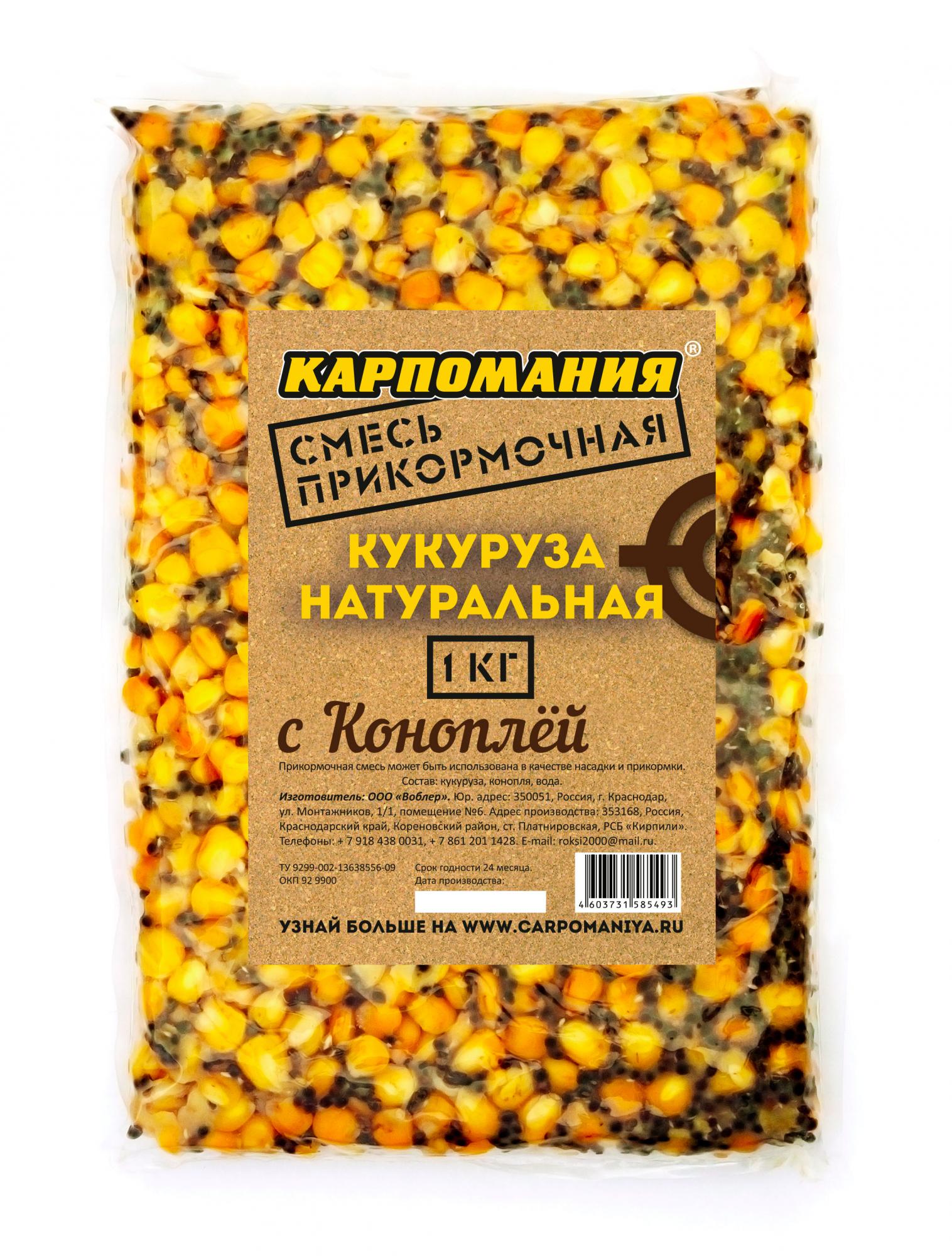 —Кукуруза /Карпомания/ натуральная с коноплёй 1кг (пакет)