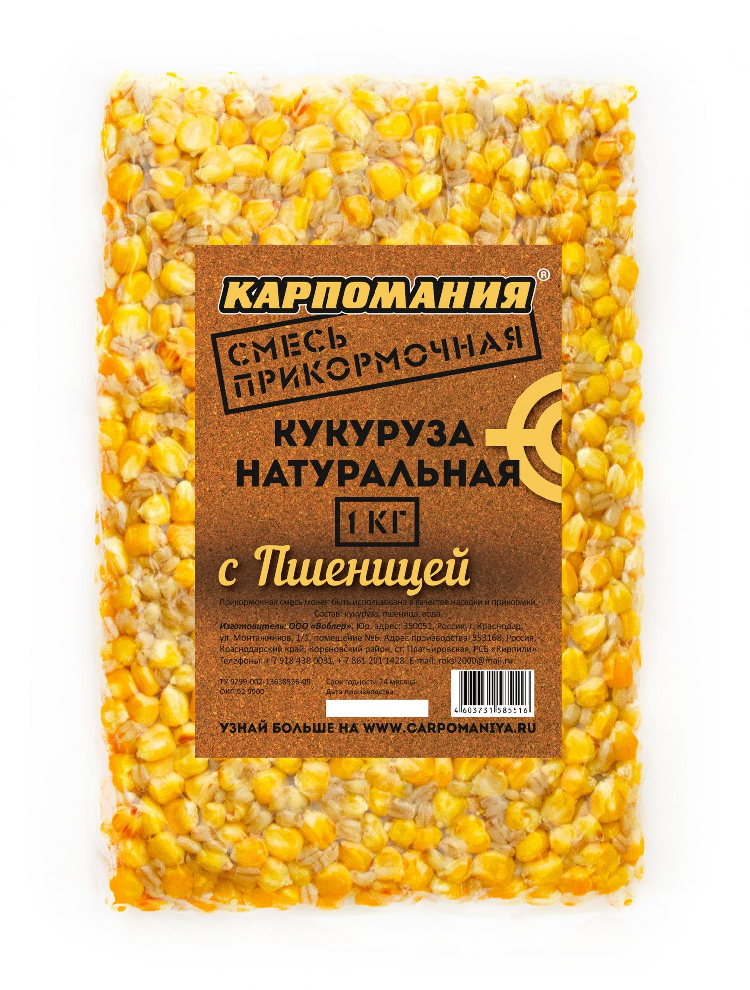 —Кукуруза /Карпомания/ натуральнаяс пшеницей 1кг (пакет)
